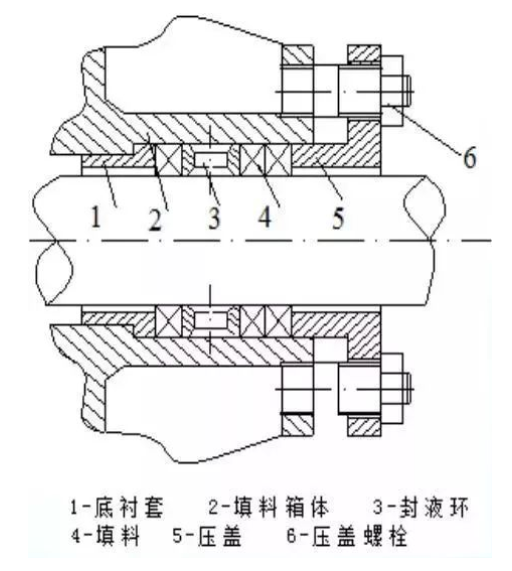 盤根通常由較柔軟的線狀物編織而成,通過截面積是正方形的條狀物填充在密封腔體內,靠壓蓋產生壓緊力,壓緊填料,使填料壓緊在密封表面(軸的外表面和密封腔)上,產生密封效果的徑向力,達到密封作用。